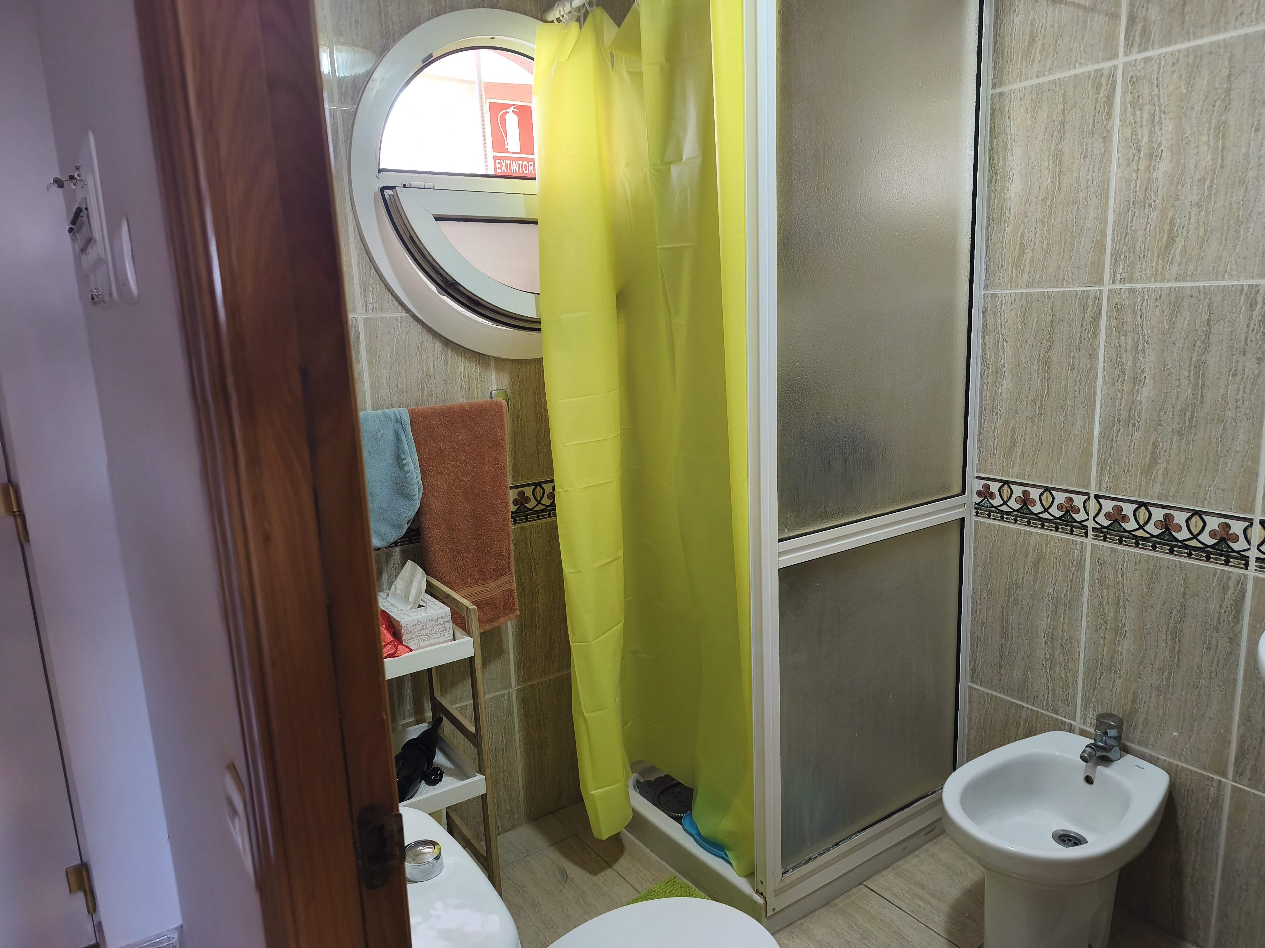 Bagno gia fornito di asciugamani, phon e prodotti, il bagno e ben attrezzato con doccia, lavandino, wc e cosa rara a tenerife c'è anche il bidè.