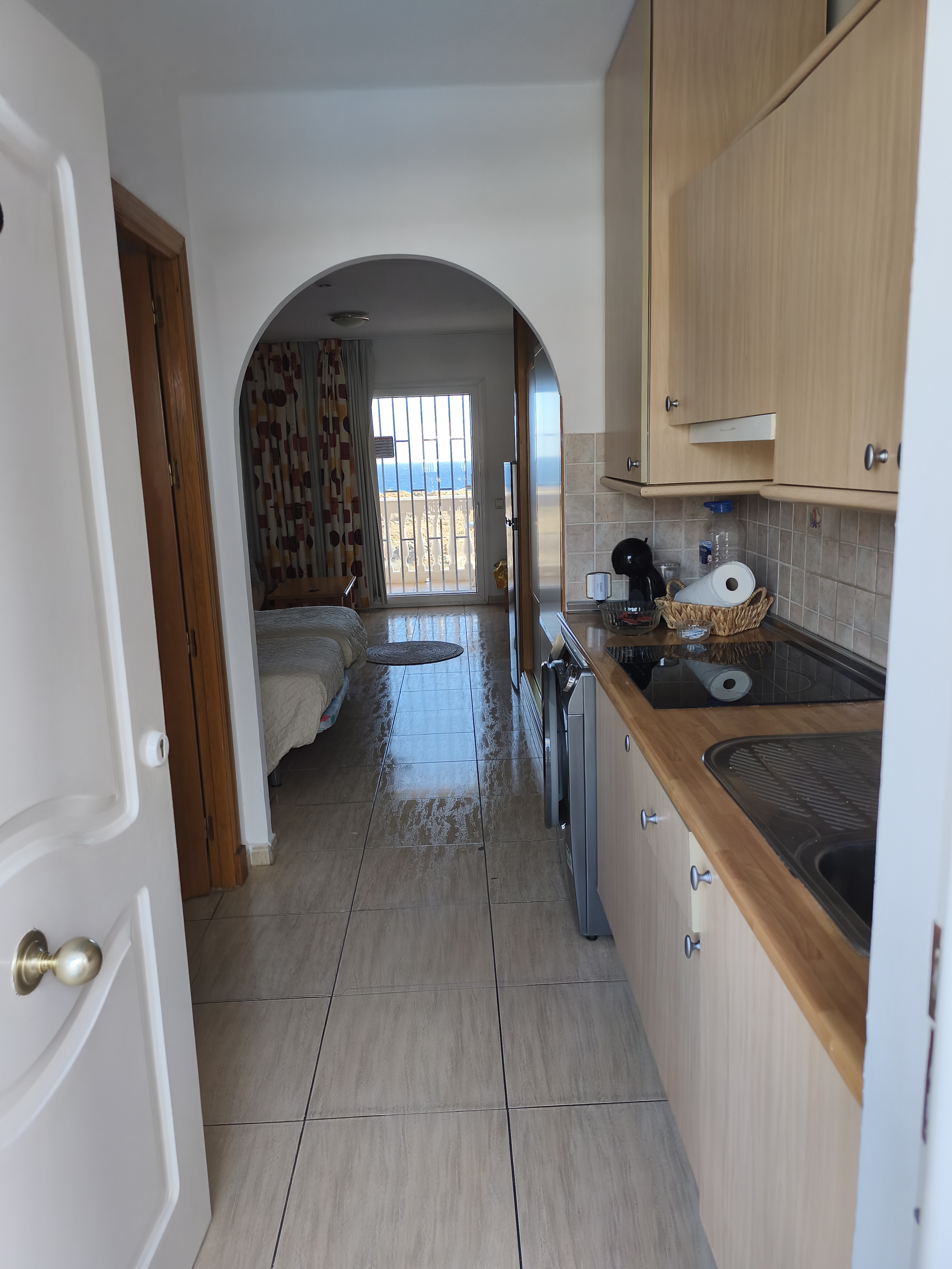 Essendo un piccolo monolocale tipico canario avrete tutto a portata di mano, la porta di ingresso ha la vista sulla piscina mentre dal terrazzino avrete vista oceano per vedere albe e tramonti.